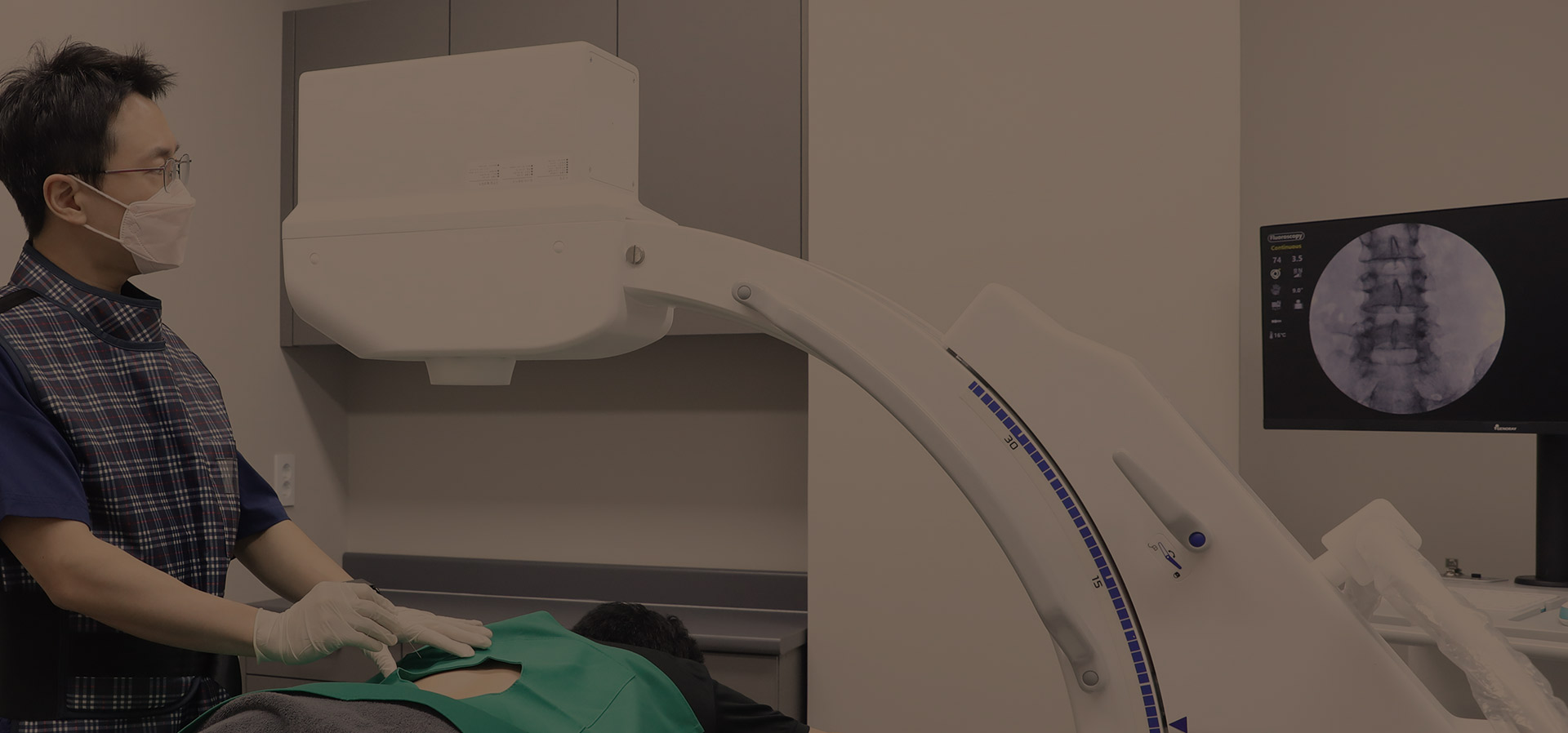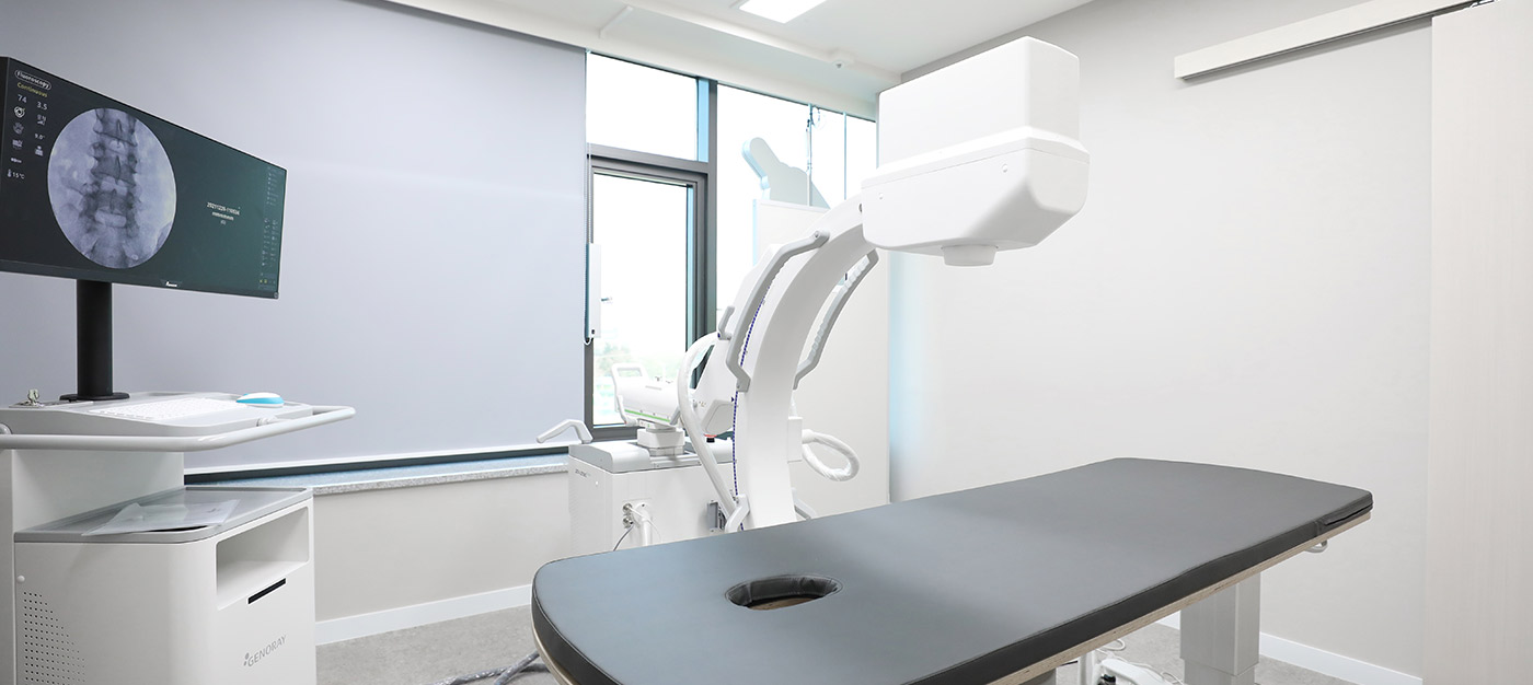 이동형 엑스선 영상장치로, 시술 부위에 엑스선을 투과하여 실시간으로 골격 및 신경 상태나 병변의 유무, 크기, 위치 등의 정보를 제공합니다. 척추 및 관절의 신경차단술, 주사치료에 사용됩니다.